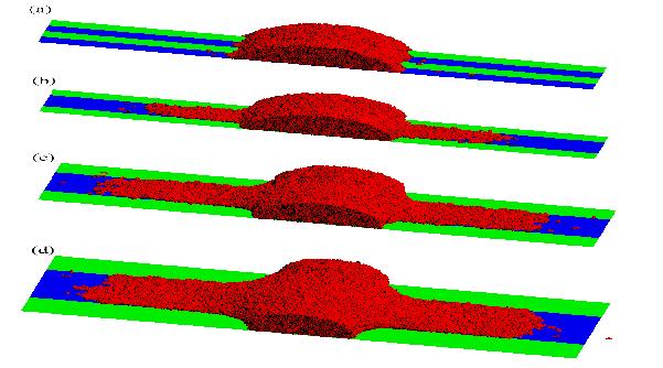 Liquid nanodroplets spreading on chemically patterned surfaces, G. S. Grest, D. R. Heine, and E. B. Webb III, Langmuir, 22, 4745-4749 (2006). (abstract)