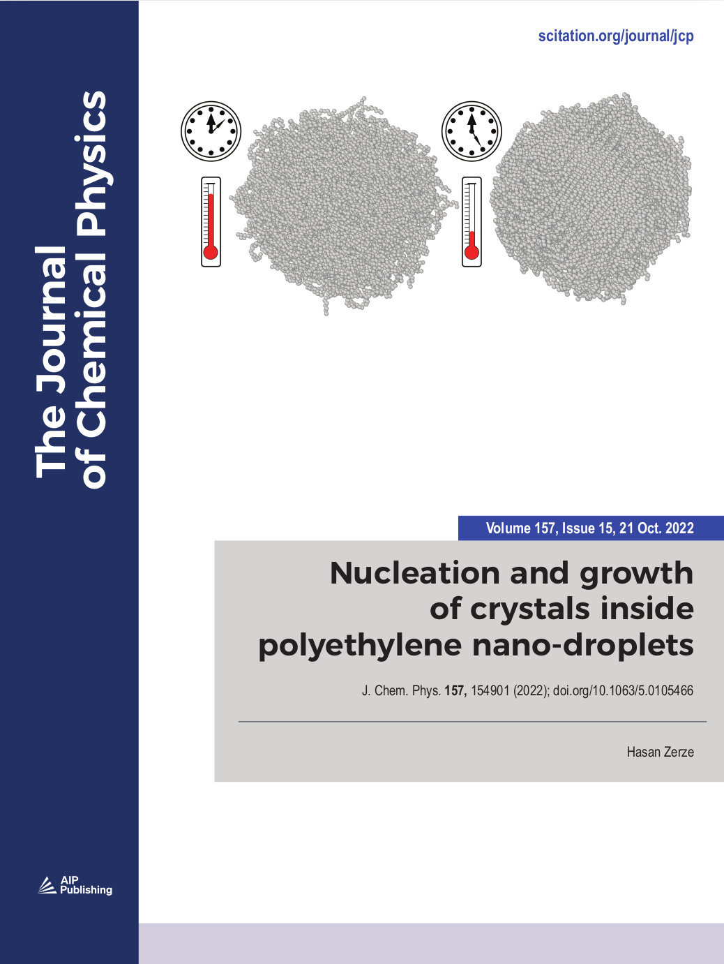 Nucleation and growth of crystals inside polyethylene nano-droplets, H. Zerze, J Chem Phys, 157, 154901 (2022). DOI: https://doi.org/10.1063/5.0105466 (abstract)